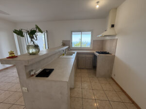 Un appartement F4 de 64 m2, entièrement rénové, accessible par un escalier indépendant. Il comprend un spacieux séjour lumineux, une magnifique cuisine rénovée en béton ciré, à la fois moderne et chaleureuse, ainsi que trois chambres confortables et une salle de bain rénovée. Une varangue de 13 m2 vient compléter l'ensemble, idéale pour profiter de la très belle vue mer.
